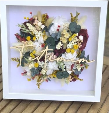 En este apartado encontraréis un portfolio de cuadros que realizamos con flores preservadas y secas para cualquier evento u ocasión especial. Todos ellos se hacen personalizados con la flor que tenemos en la tienda, por lo que cada uno de ellos es único.