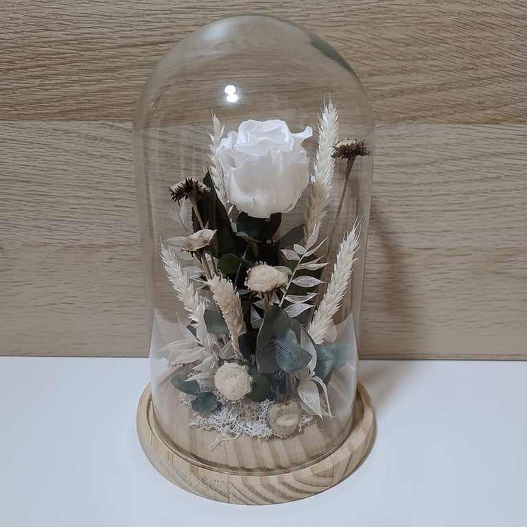 Las cúpulas de flores preservadas y secas los podéis conseguir desde 30€.