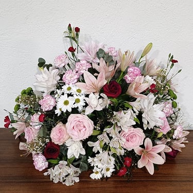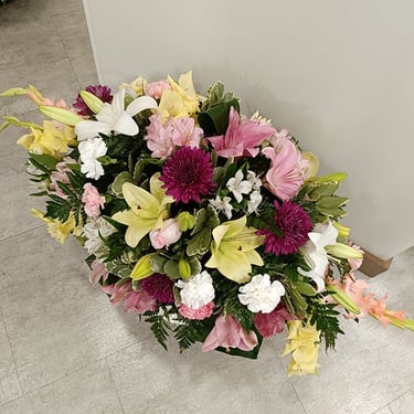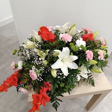 Para elaborar vuestro arreglo floral funerario solo necesitamos saber: el presupuesto que tenéis (para poder orientaros en la cantidad de flores y tipo de arreglo que podemos componer) y el tipo de composición que elaborar (para ello nuestras floristas os explicarán las diferencias entre ellas y os aconsejarán cual es la ideal para el lugar en el que vayáis a colocar el arreglo floral). Una vez tengamos esto definido con vosotros os preguntaremos sobre las variedades de flores y verdes que queréis incluir en el arreglo.