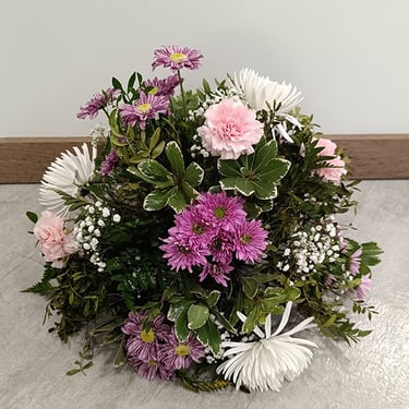 Tanto los ramos como los centros funerarios pueden componerse de diferentes maneras, acorde con el lugar de destino del arreglo floral. Podemos componer ramos redondos o tumbados, y centros a una cara, redondos o en almohadón. Si no estáis seguros de la forma que elegir para el arreglo, nuestras floristas os guiarán y enseñarán la diferencia entre ellos.