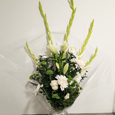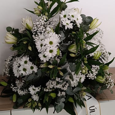 Para elegir vuestro arreglo funerario lo único que tenéis que hacer es pasaros por nuestra tienda o escribirnos por whatsapp, os enseñaremos las flores que tenemos disponibles y elaboraremos una composición única para vosotros, en el formato que queráis (ramo o centro).