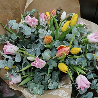 Para elaborar vuestro ramo solo necesitamos saber: el presupuesto que tenéis (para poder orientaros en la cantidad y tipos de flores que pueden componer el ramo), los verdes (eucalipto, madroño, helecho...) y flores de relleno (os enseñaremos cuales tenemos disponibles en ese momento) que queráis incluir y en qué tipo de evento u ocasión va a poner el toque distintivo (aniversario, cumpleaños, velatorio, agradecimiento o simplemente un detalle especial).