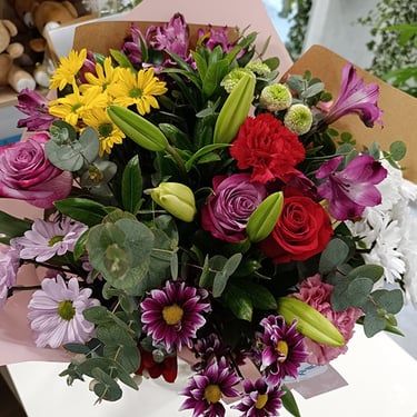 Los ramos de flores variadas los podéis conseguir desde 15€ (si vuestro presupuesto es inferior a este también os ofrecemos la opción de componer detalles florales), en función al presupuesto que tengáis nuestras floristas os irán guiando hasta conseguir la combinación de flores ideal a incluir en la composición.