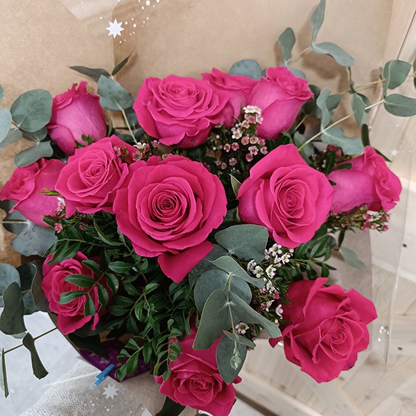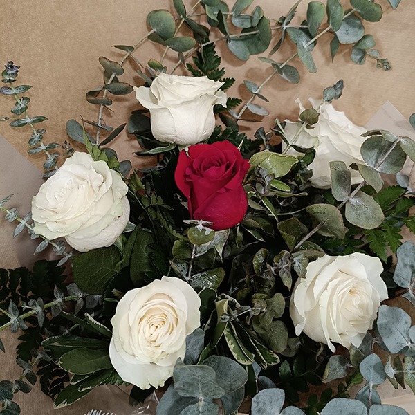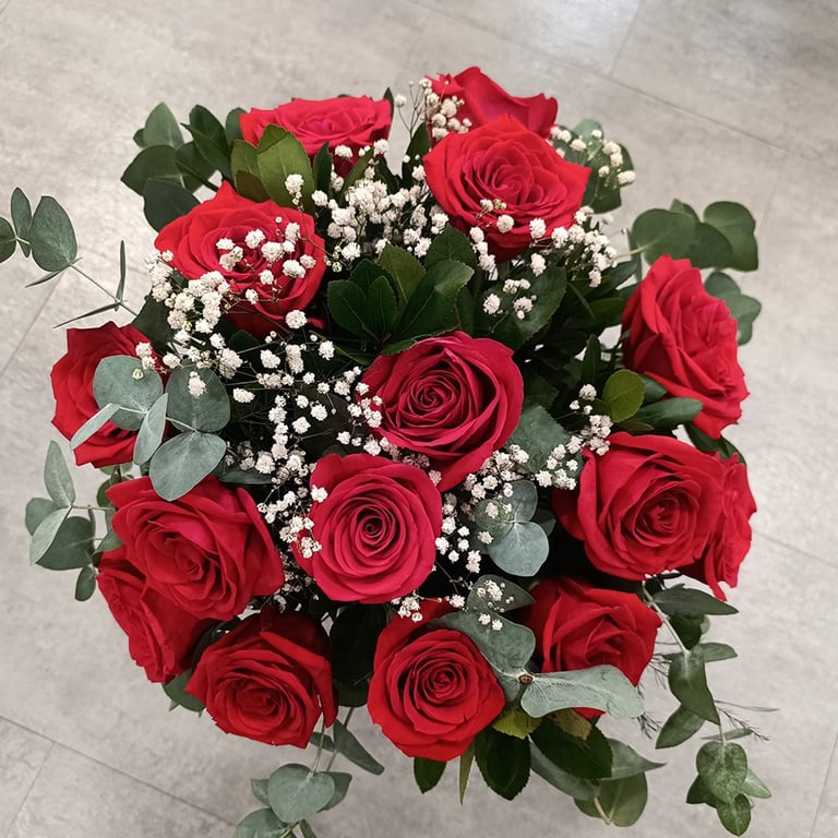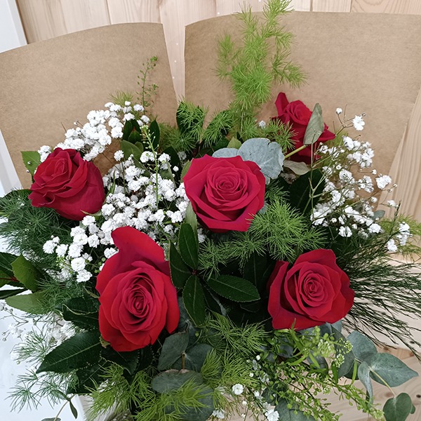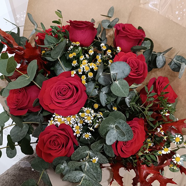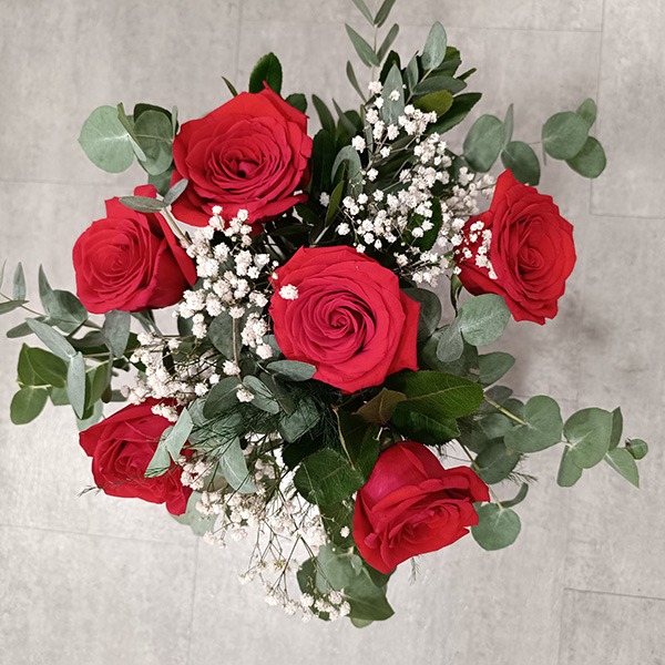 Para elaborar vuestro ramo solo necesitamos saber: el presupuesto que tenéis (para saber la cantidad de rosas que podemos incluir en el ramo), el color o colores que más os gusten (combinar varios colores de rosas no aumenta el precio del ramo), los verdes (eucalipto, madroño, helecho...) y flores de relleno (os enseñaremos cuales tenemos disponibles en ese momento) que queráis incluir y en qué tipo de evento u ocasión va a poner el toque distintivo (aniversario, cumpleaños, velatorio, agradecimiento o simplemente un detalle especial).
